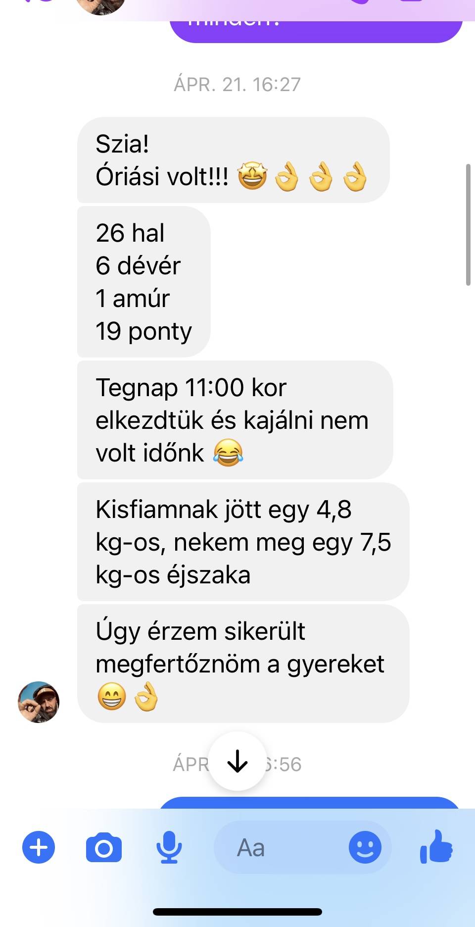 🏆 (2024.04.01–02 hétvégén az első vendég 32 db pontyot, amúrt és koi-t fogott, a legnagyobb 13 kg volt!)